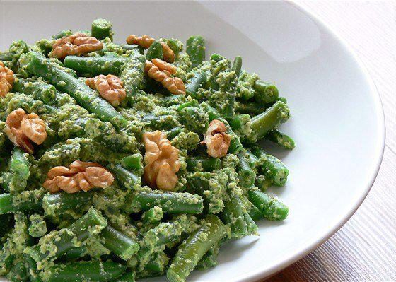 Зеленое лобио (плоская стручковая фасоль) с орехами