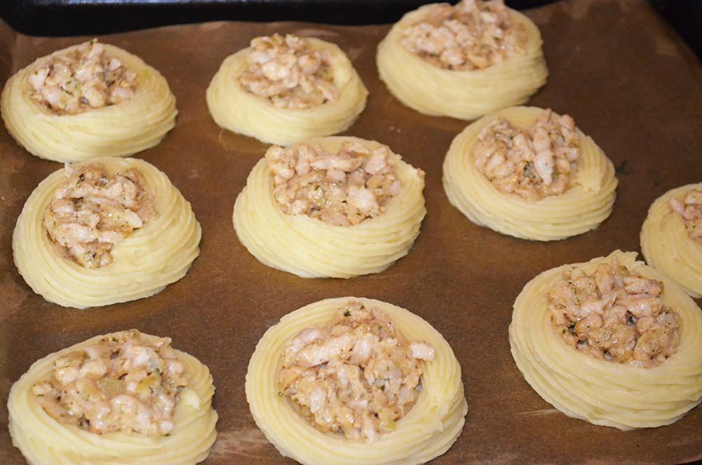 Из полученного пюре сформируйте гнезда. На помощь может прийти кондитерский мешок. Если его нет, что выложите пюре ложкой.