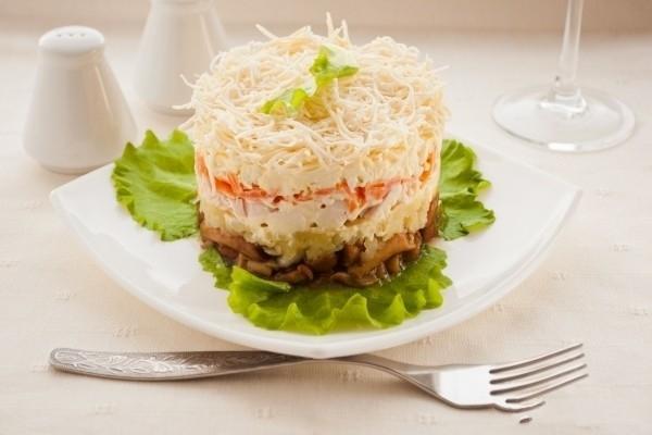 2. Салат из куриного филе, свежих огурцов и консервированных шампиньонов