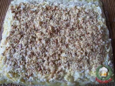 Потом измельченные орехи и смазать майонезом.