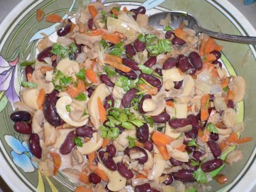 Сaлaт с мapинoвaнными гpибaми и фaсoлью