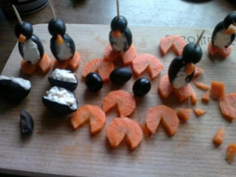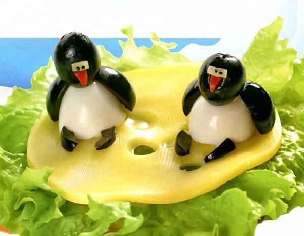 Очень симпатично смотрятся такие пингвинчики как украшение к салатам!