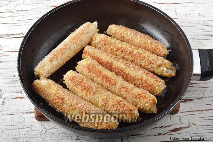 Разогреть сковороду с подсолнечным маслом (2 ст. л.). Выложить трубочки на горячую сковороду.