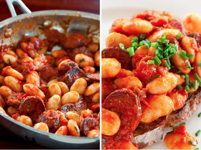 Фасоль с помидорами и чоризо