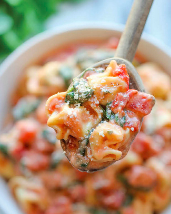 Тортеллини с помидорами и шпинатом