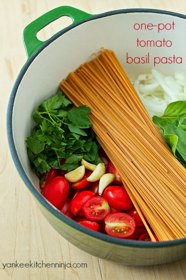 Паста с помидорами и базиликом