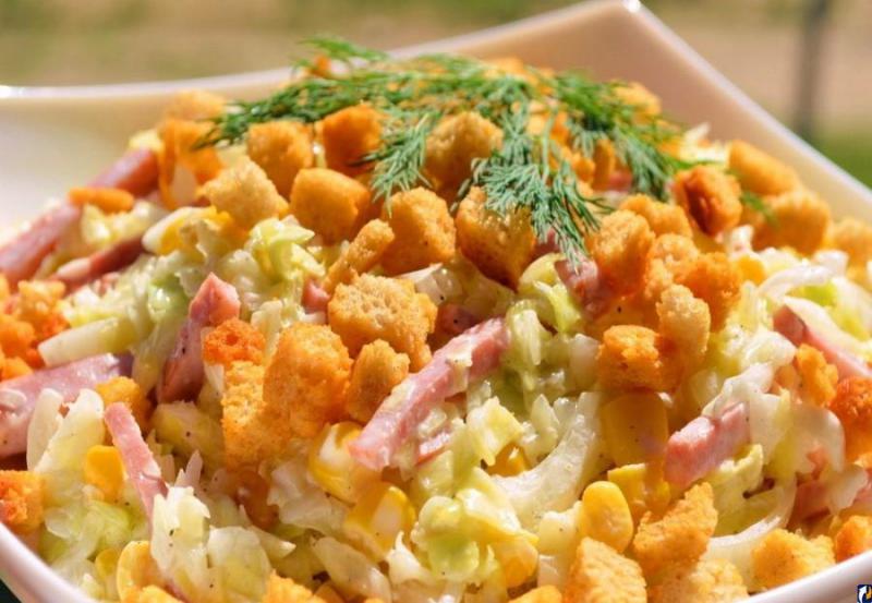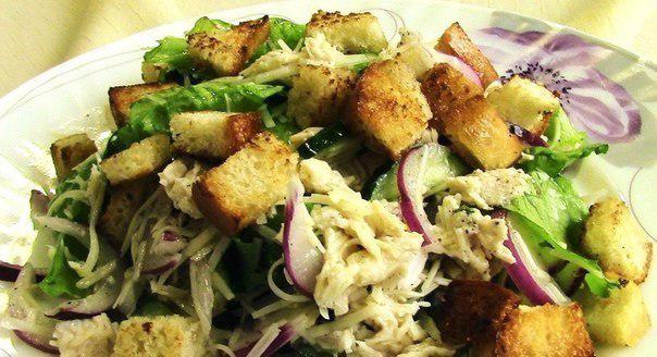 Салаты с сухариками - 7 рецептов