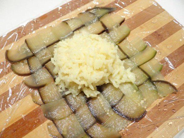 10. На баклажановую плетенку уложите рис.