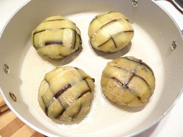 9. На пленке выложите плетенку из баклажанов.