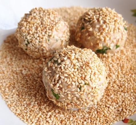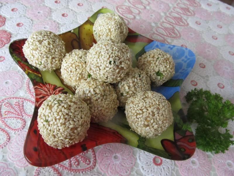 Закусочные шарики с печенью трески в кунжуте
