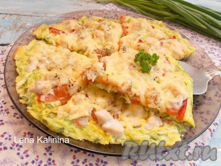 Пицца из кабачков - это замечательное и очень вкусное блюдо-запеканка из кабачковой основы и начинки из курицы, помидоров и сыра. По желанию, можно начинку заменить по своему вкусу. Обязательно попробуйте!