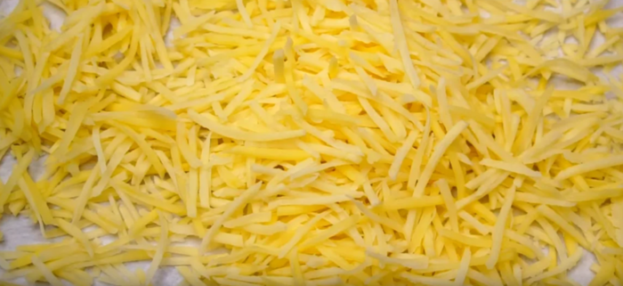 Четвертым слоем половину сыра, смазываем майонезом.