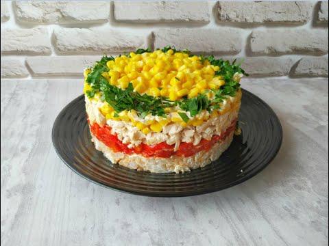 Слоеные салаты для меня всегда фавориты праздничного стола. Сегодня я хочу познакомить вас с одним рецептом салата, который мне очень нравится. Он смотрится ярко на любом столе, получается салат вкусным, а при условии заранее подготовленных продуктов, на его приготовление вы потратите всего 15 минут.
