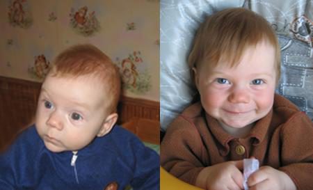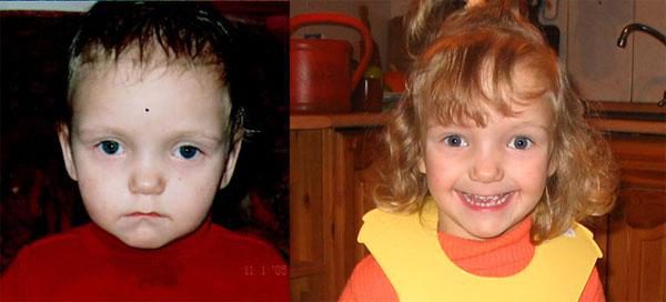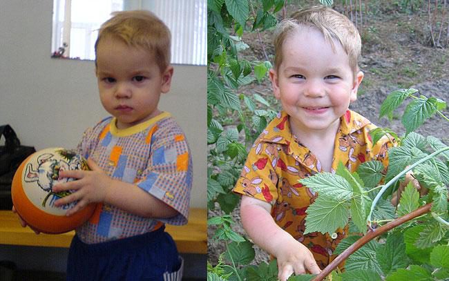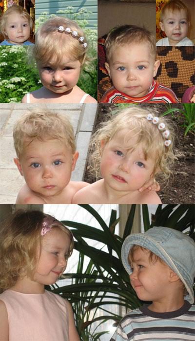 Мама Любы и Илюши: " Первые фото сделаны в марте 2006 года, такими мы увидели наших детей в интернете. Фото с дачи — спустя лишь два месяца! Фото внизу: прошел всего год (разве только год???), а такое ощущение, что дети были с нами всегда, только с их появлением и началась НАСТОЯЩАЯ жизнь…"