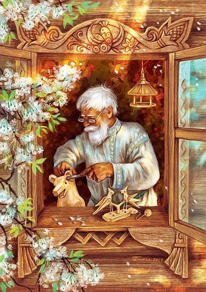 Дед, молча, забирает миску: