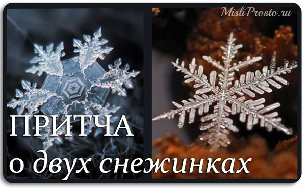 Две маленькие снежинки, летевшие рядом, завязали разговор. Чтобы их не отнесло друг от друга, они взялись за руки и одна снежинка весело сказала: