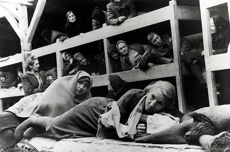 Внутри барака с обеих сторон возвышались трехэтажные койки. На каждой из них должны были поместиться три или четыре женщины — на грязных соломенных матрасах. Было жестко, потому что солома давно стерлась в пыль, и больные женщины лежали почти на голых досках, к тому же не гладких, а с сучками, натиравшими тело и кости.