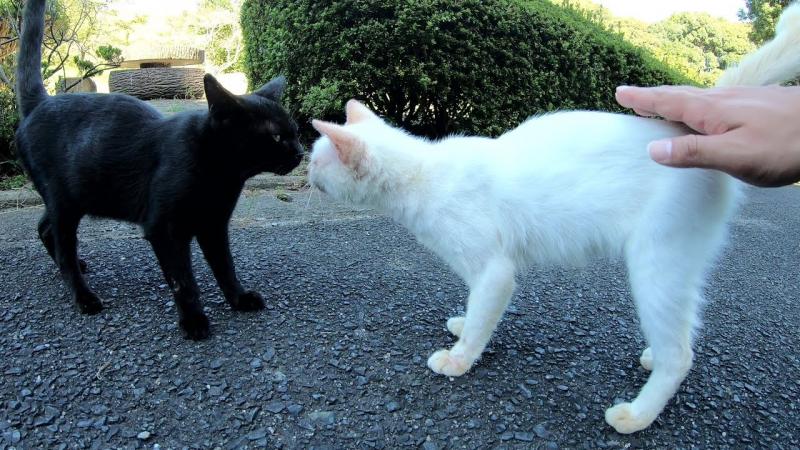 Белый кот хотел возразить. Он хотел сказать, что не хочет уходить с улицы без своего чёрного друга.
