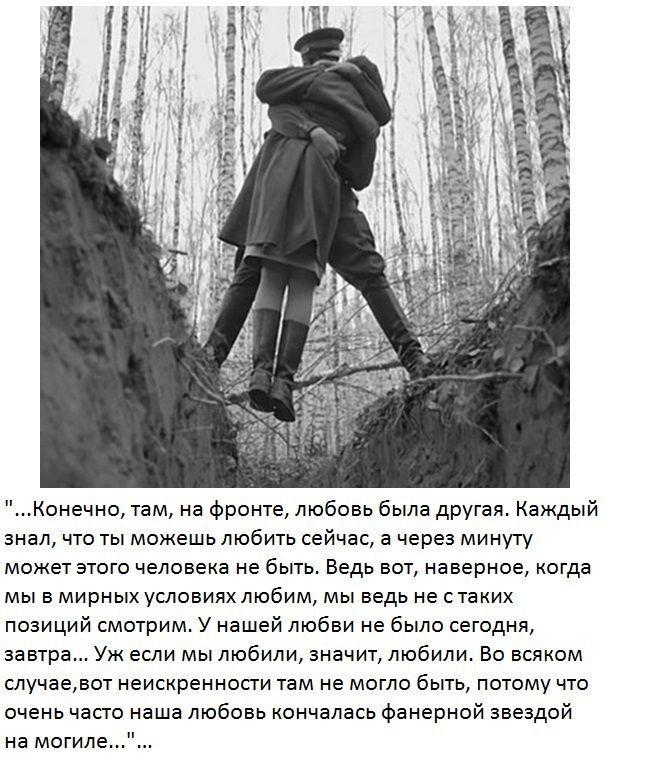 Война - это не только кровь, потери и слёзы... Человек всегда остается человеком, и даже война не в силах заглушить в нем прекрасное стремление - ЛЮБИТЬ! В наше время понятие "любовь" не ценится и не воспринимается. Люди раскидываются чужими чувствами и разрушают судьбы других.На войне любовь была другая...