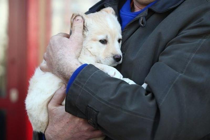 Щенок бросился на руки мужчины. И тот стал покрывать маленькую мордочку поцелуями.