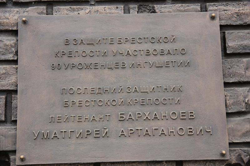 Памятник последнему защитнику Брестской крепости - лейтенанту Уматгирею Артагановичу Барханоеву, расположен на территории Мемориала памяти и славы, в городе Назрань Республики Ингушетия. Посвящён советскому солдату, последнему из бойцов, оборонявших Брестскую крепость в Великой Отечественной войне. Открыт 9 июня 2012 года.