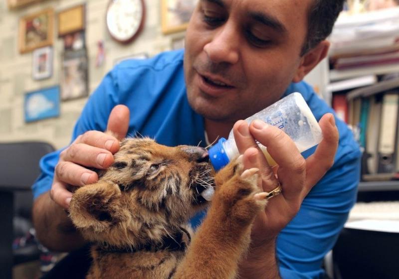 Первые две недели лечения были самые тяжелые, потом ситуация стала налаживаться. Фактически Жорика я лечил год. Чего только не было за это время! И трубу горячего отопления он у нас вырывал, и прогулки с ним оборачивались шоком для горожан, бдительные бабушки даже вызывали полицию. Мы понимали, что выздоровевшего тигра нельзя оставлять в приюте. Тогда я начал искать зоопарк, который бы мог взять Жорика на ПМЖ.