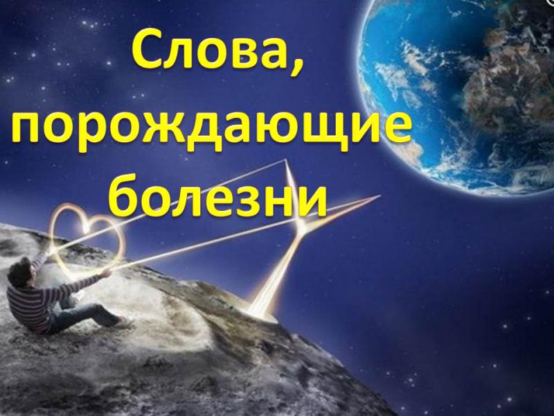 И теперь можно убежденно говорить, что картина такая: сначала человек включает слова-разрушители в свою активную речь (закладывает программу конкретной болезни), и только потом возникает болезнь. И не какая-нибудь болезнь, а точно та, которая была заявлена.