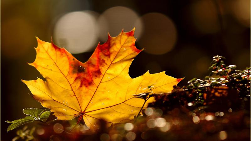 На кленовых листьях солнышко осталось.