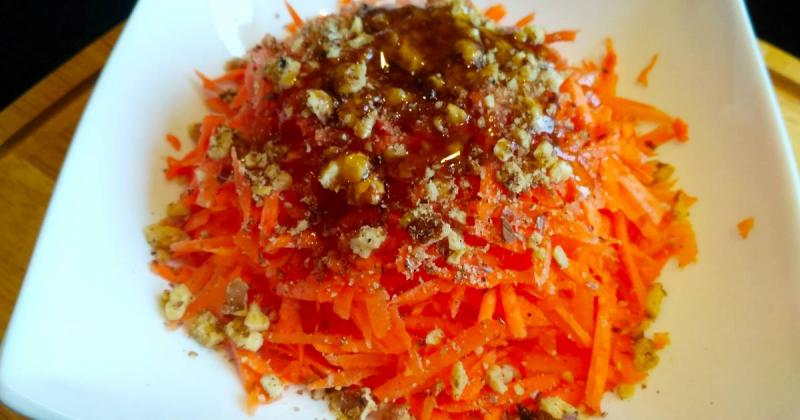 САЛАТ ИЗ МОРКОВИ С ГРЕЦКИМИ ОРЕХАМИ И МЕДОМ