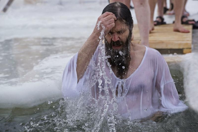 Прорубь для купания должна быть прорублена в виде креста, а перед погружением в воду священник должен провести служение.