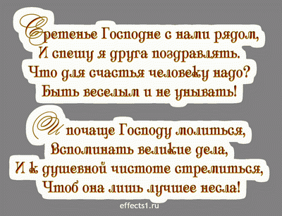 Праздник Сретения Господня ознаменован торжественными церковными службами и освящением свечей. В этот день ваше хорошее настроение и смирение перед Богом очищает душу и способствует обретению счастья.