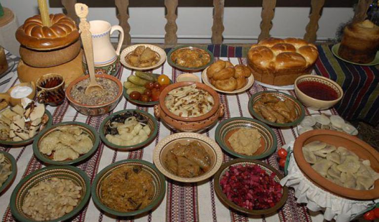 Как вы уже поняли, приготовить на рождественский стол нужно именно 12 блюд. И эти 12 блюд на Рождество должны быть постными, то есть не содержать мясо и животные жиры, да и вообще ничего от животного мира (ни молока, ни сметаны, ни яиц, и т.п.). Приготовить на Рождество можно лишь рыбу, всевозможные злаки, овощи и фрукты, конечно. Баловать себя балыками и колбасами можно будет уже с завтрашнего дня, а приготовить 12 блюд на Рождество нужно только постными.