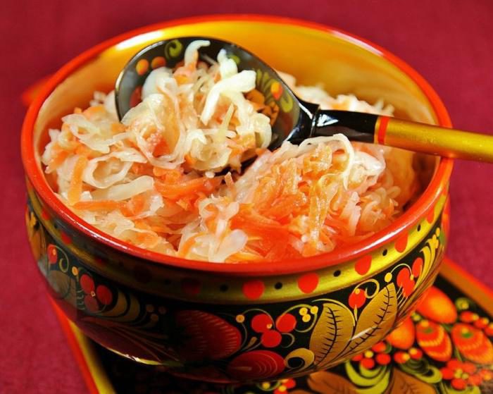 Еще одно традиционное славянское блюдо. Капусту смешивают с замороженной клюквой. Клюква и капуста дополняют друг друга — в сочетании получается хороший набор витаминов и микроэлементов (витамин С, железо, кальций, белок и другие полезные вещества). Квашеную капусту на рождественский стол надо готовить заранее, за три дня.