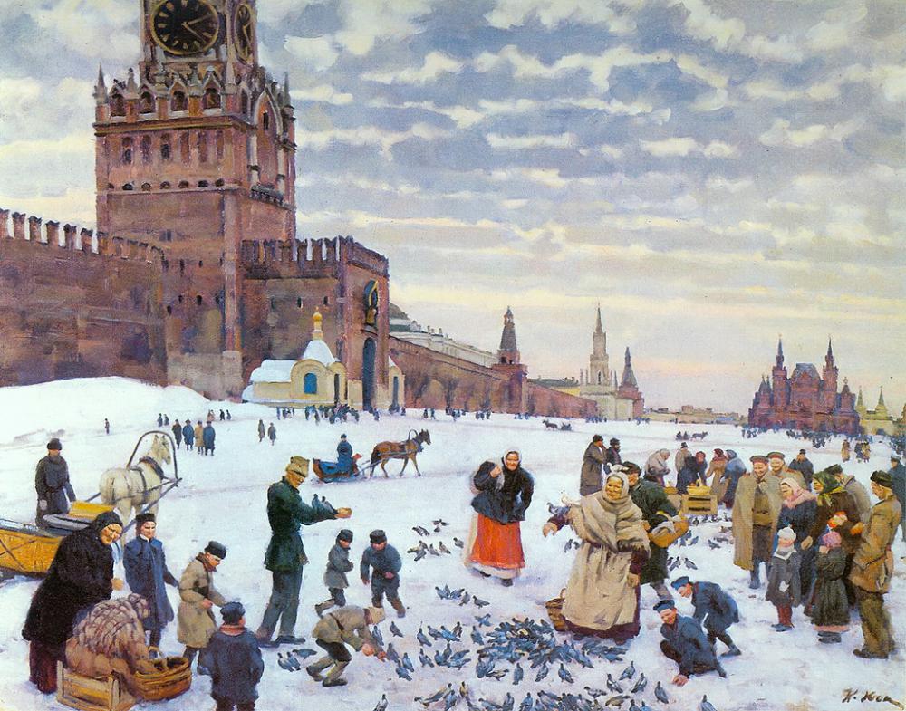 Тут же ратным строем стояли стрельцы в цветном платье, со знаменами, барабанами и ружьями. Повсюду вокруг, даже на крышах соборов стоял народ.
