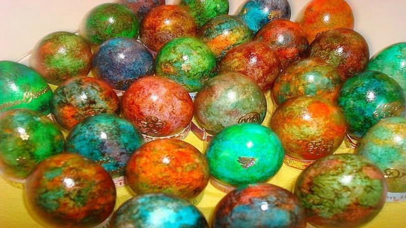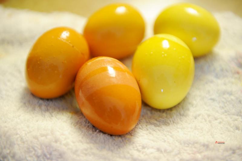 Для этого способа окраски лучше брать яйца чисто белого цвета, не желтые – тогда окрашивание будет более ярким.