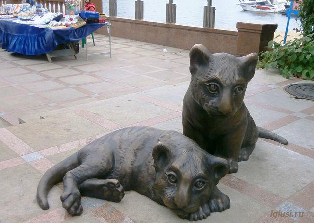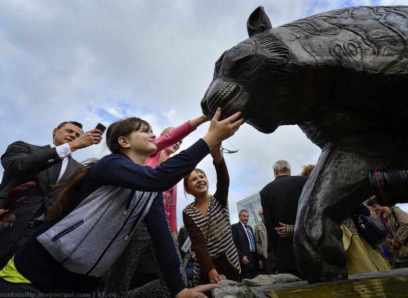 На центральной площади шумит весёлый праздник, а на Спортивной набережной грустят два бронзовых тигрёнка.