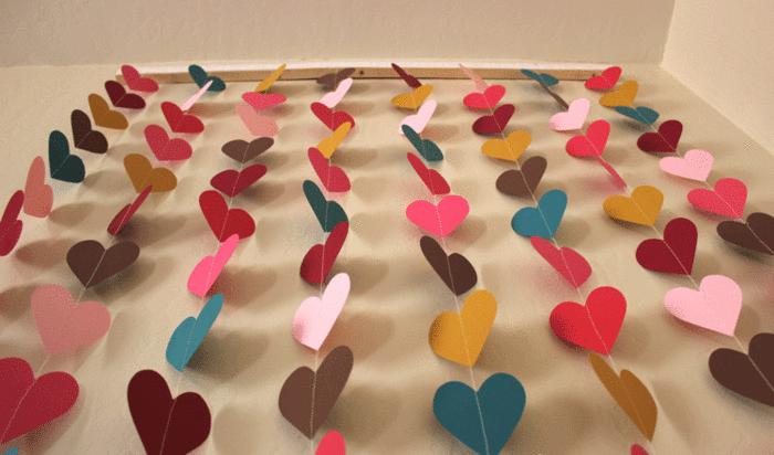 Форма гирлянды может быть любая - круги, сердечки, бабочки или цветы - в общем, как подскаэет ваша фантазия.