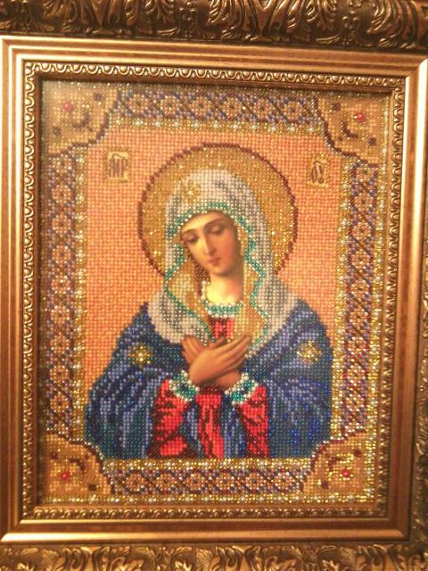 Икона "Богородица Милующая" из бисера