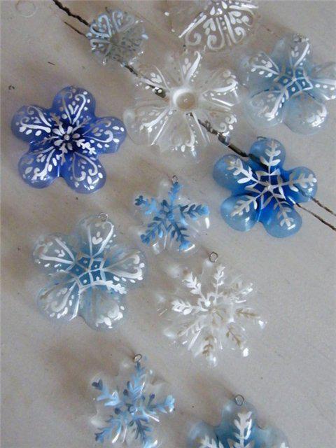 Грядет Новый год! Предлагаем вашему вниманию мини мастер-класс о том, как сделать симпатичные подвески-снежинки из пластиковых бутылок.