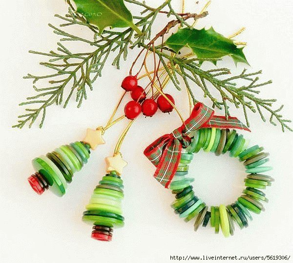 Много пуговок! Идеи новогоднего декора из пуговиц!