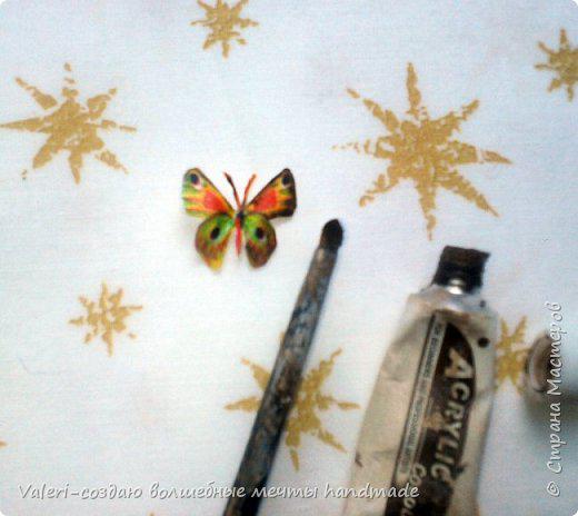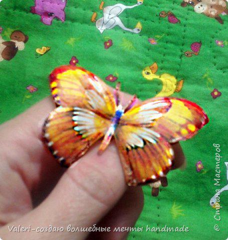 Далее, после полного высыхания, вырезаем маникюрными ножничками наших бабочек, не забывая вырезать усики, если усики нечаянно срезали - не беда, потом можно подклеить кусочки проволочки, лески, нитки, промазанные ПВА и высушенные - в общем, что угодно, даже из той же бутылки полосочки - потом их можно покрасить.
