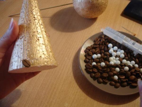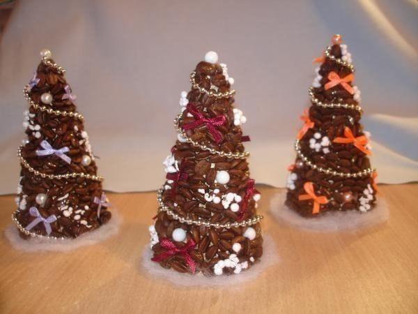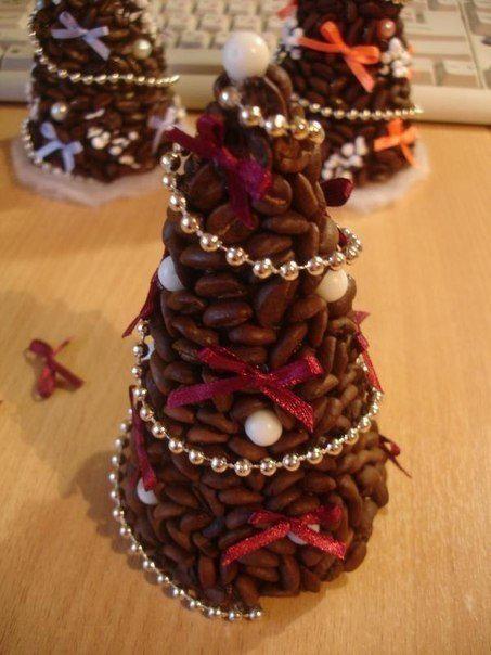 Из того, что есть под рукой, можно создать самые разные новогодние поделки! Смотрите два мастер-класса, как из ватных дисков и кофейных зерен можно быстро и просто сделать очень симпатичные елочки для украшения вашего дома или для подарка вашим друзьям и близким!