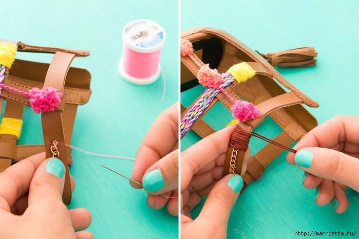 Обувь в стиле бохо - переделка босоножек своими руками