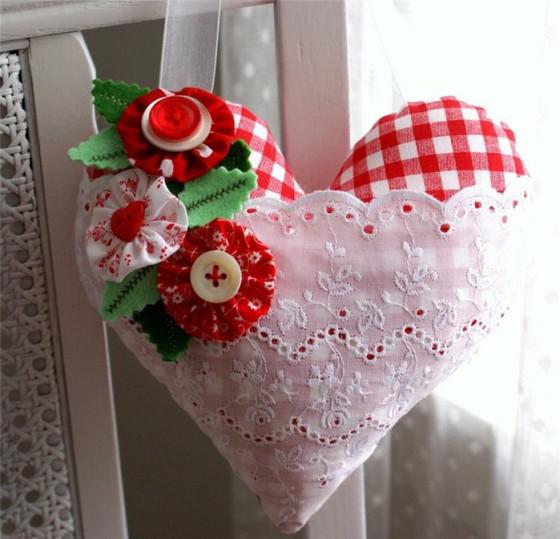Если вы шьете или вяжете, можете сшить небольшую подушечку в форме сердца и украсить ее красочными пуговицами или тканевыми аппликациями.