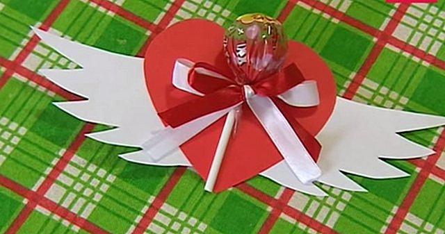 Прекрасным подарком станет сладкая и простая в изготовлении конфетная валентинка.