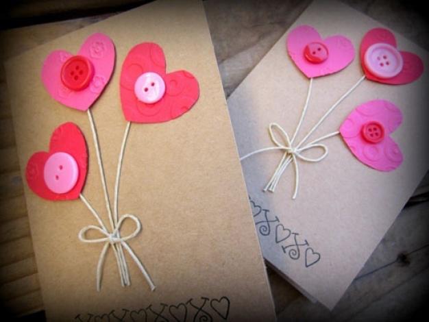 При помощи картона, клея и цветной бумаги можно сделать вот такие романтичные валентинки.