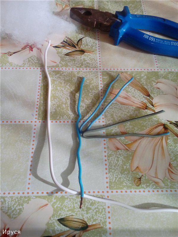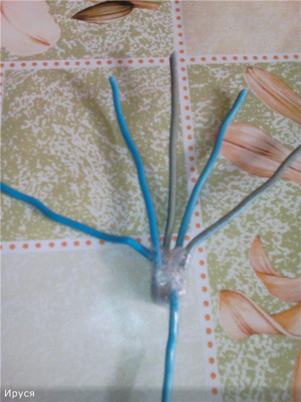 Ну а теперь рука! Я не мастер, но попробую объяснить) Подобрала проволоку из которой надо сделать ручку и скрепила между собой скотчем.