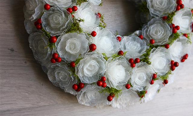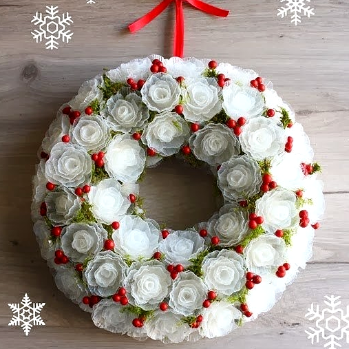 Просто замечательный нежный морозный венок можно сделать из пластиковых яичных лотков! Посмотрите, какая красота!!!