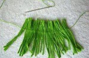 Выкладываем в ряд зеленые нитки и прошиваем их, как желтые до этого.