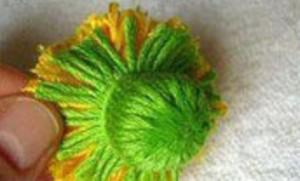 Обворачиваем желтый цветочек, хорошо закрепляем ниткой.